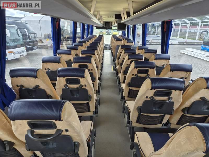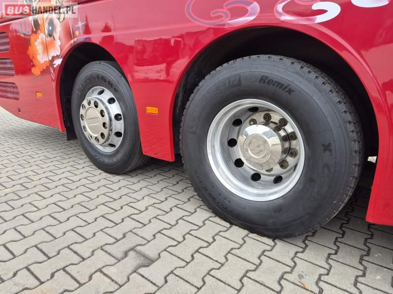 Wyposażenie: video, WC, lodówka, kabina sypialna, fotele odchylane, oświetlenie indywidualne, ABS, tempomat, retarder, mikrofon, klimatyzacja, radio, regulacja wysokości nadwozia, centralny zamek, podwójne szyby boczne, wspomaganie kierownicy, elektryczne lusterka, DVD, ogrzewanie stacjonarne