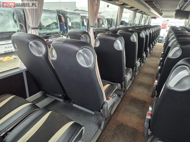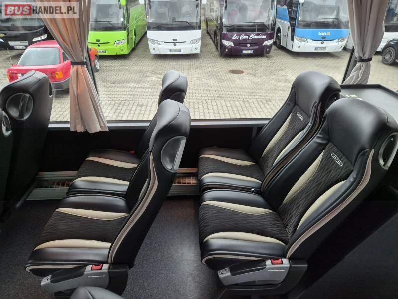Wyposażenie: video, WC, lodówka, fotele odchylane, oświetlenie indywidualne, ABS, tempomat, retarder, CD, podnóżki, mikrofon, klimatyzacja, radio, sejf, regulacja wysokości nadwozia, centralny zamek, podwójne szyby boczne, wspomaganie kierownicy, elektryczne lusterka, DVD, ogrzewanie stacjonarne