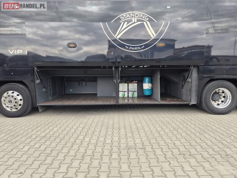 Wyposażenie: video, WC, lodówka, kabina sypialna, oświetlenie indywidualne, ABS, tempomat, retarder, CD, podnóżki, stoliczki, mikrofon, klimatyzacja, radio, regulacja wysokości nadwozia, centralny zamek, podwójne szyby boczne, wspomaganie kierownicy, elektryczne lusterka, aluminiowe felgi, fotele odchylane i rozsuwane, DVD, ogrzewanie stacjonarne, ESP