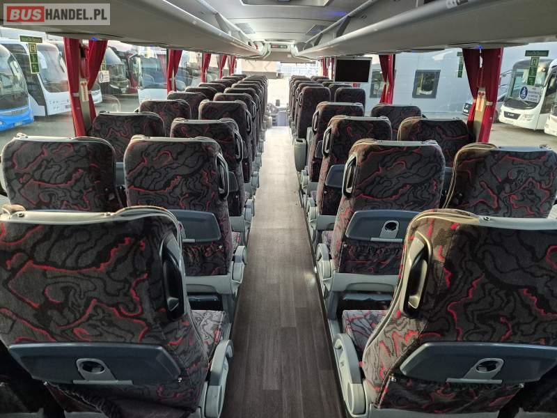 Wyposażenie: video, WC, lodówka, kabina sypialna, fotele odchylane, oświetlenie indywidualne, siateczki, ABS, tempomat, retarder, telefon, nawigacja, CD, podnóżki, stoliczki, mikrofon, klimatyzacja, radio, rampa dla inwalidów, regulacja wysokości nadwozia, centralny zamek, podwójne szyby boczne, wspomaganie kierownicy, elektryczne lusterka, DVD, ogrzewanie stacjonarne