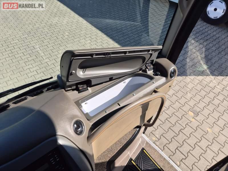 Wyposażenie: video, WC, lodówka, caffebar, fotele odchylane, oświetlenie indywidualne, siateczki, ABS, tempomat, retarder, podnóżki, stoliczki, mikrofon, klimatyzacja, radio, regulacja wysokości nadwozia, centralny zamek, podwójne szyby boczne, wspomaganie kierownicy, elektryczne lusterka, DVD, ogrzewanie stacjonarne